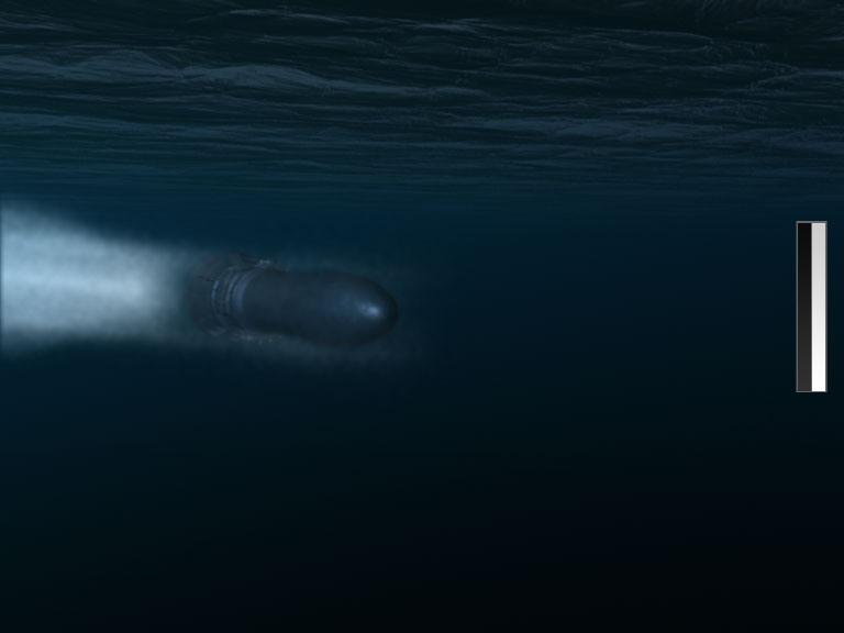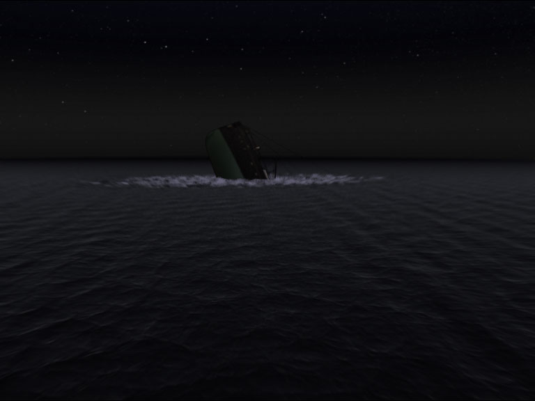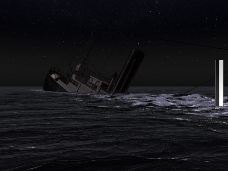 Because of the short time frame, there wasn't much time for compositing. One shot needed an animated route of the ship. That was the only thing that needed more compositing work. An high resolution map was used to move an virtual camera from the home port to the point were the ship sank.